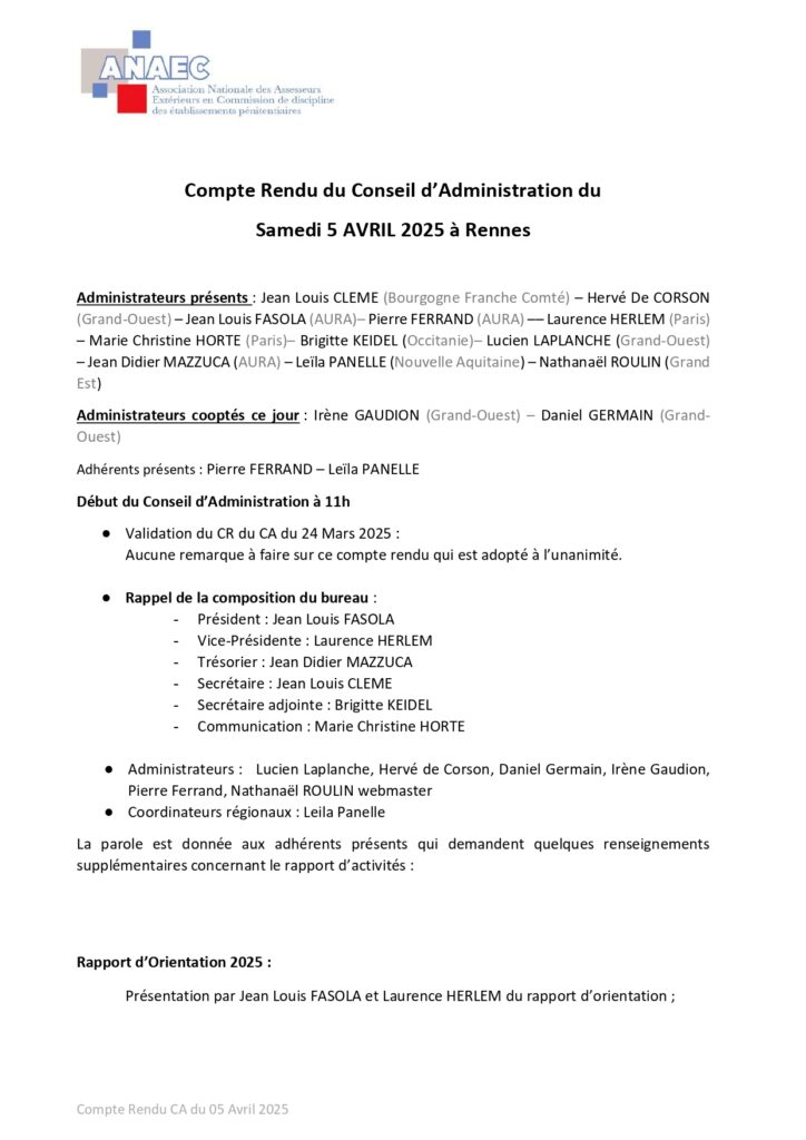 Accueil » Adhérents » Compte rendu du CA du 05/04/2025